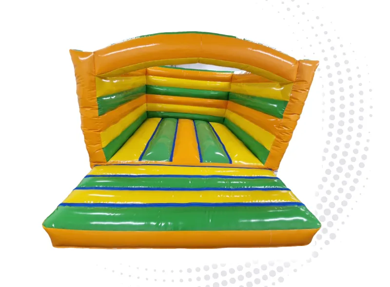 Orange, green and yellow castle bright and colourful, perfect for smaller venues and younger children.